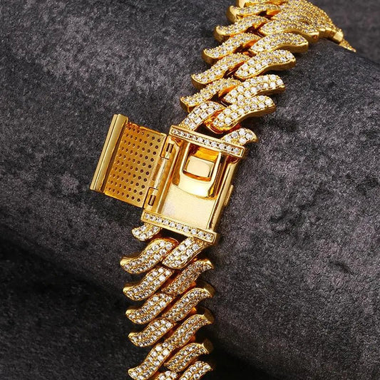 18mm Gold Two-Row Diamond Thorns Cuban Link Bracelet