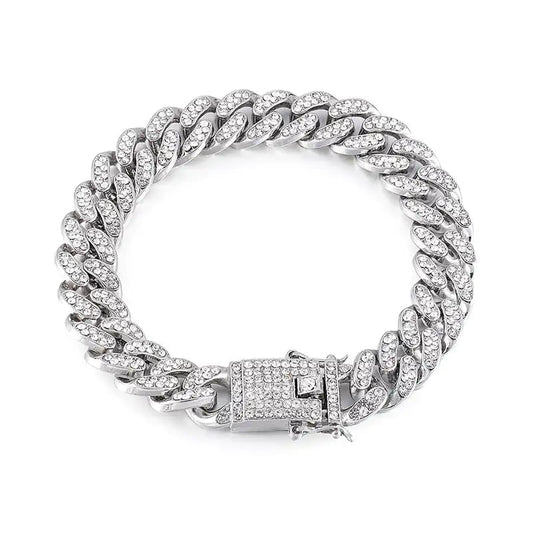 Flooded Diamond Cuban Link Bracelet in White Gold