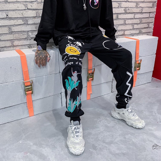 • Men's Dragon Print Loose Trousers - Musttbuy