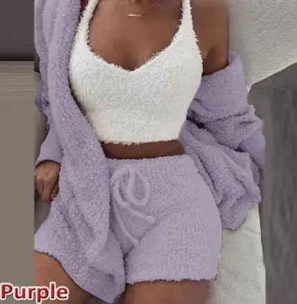 3-Piece Women's Fluffy Crop Top, Skinny Pants & Coat Set