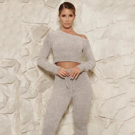 Women's Irregular Design Long-sleeved Sweater Harem Pants Suit