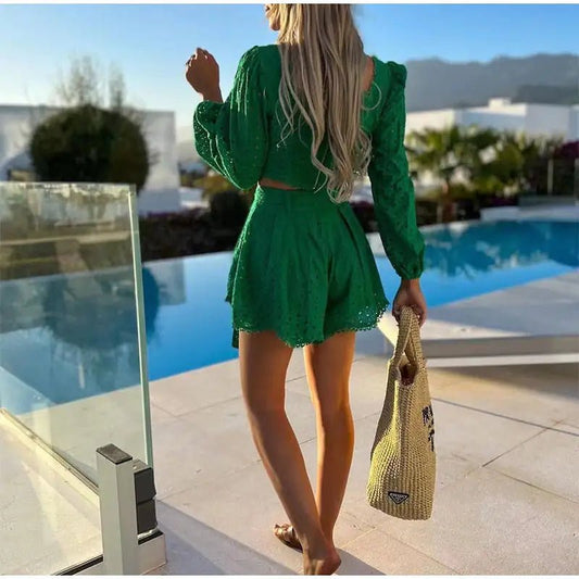 Long Sleeve Nipped Waist Top And Wide Legs Pants