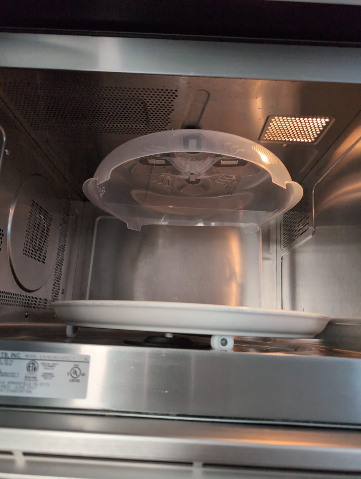 Check out this magnetic microwave cover that attaches right to the microwave ceiling when you’re done. No more splatters, no more mess—just quick, clean cooking every time!
