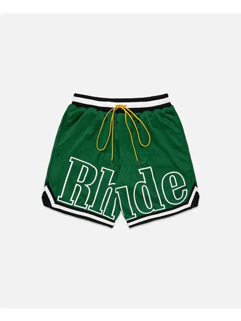 Step into the spotlight with the Rhude Varsity Shorts, a signature blend of athletic silhouette and high-end flair. These premium mesh shorts feature oversized Rhude branding across the front and varsity-style striped hems, designed for those who play hard and dress harder. Finished with a luxe extended drawstring waistband, they’re your go-to for gym sessions, laid-back afternoons, or styled streetwear fits.