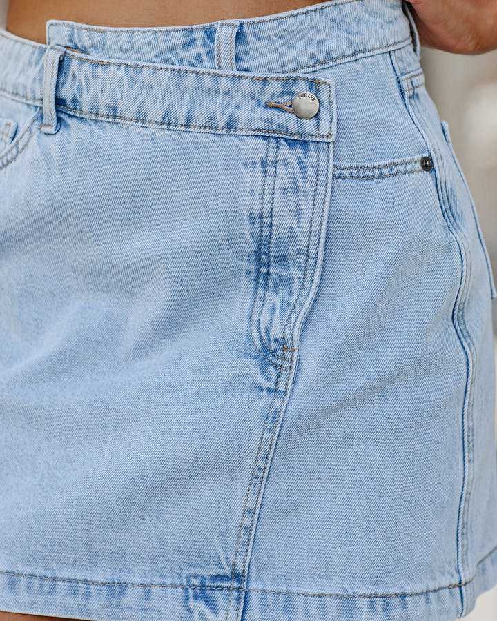 Step into elevated street style with the Vienna Washed Skirt – a contemporary take on the classic denim mini. Featuring an irregular hem and functional pocket accents, this piece brings structure and charm to any outfit. Dress it up with boots and accessories or down with sneakers and a tank – this skirt adapts to your vibe with ease.